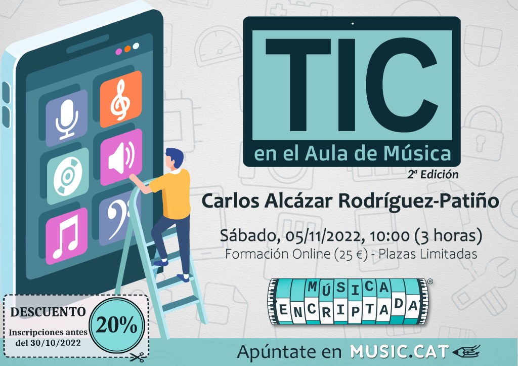 ¡Llegó el momento! El próximo sábado, 5 de noviembre a las 10:00 (hora española peninsular) realizaré una nueva edición del curso TIC en el Aula de Música. Tendrá una duración de 3 horas y se realizará por videoconferencia a través de Zoom, la cual quedará grabada y se podrá ver durante 6 meses.