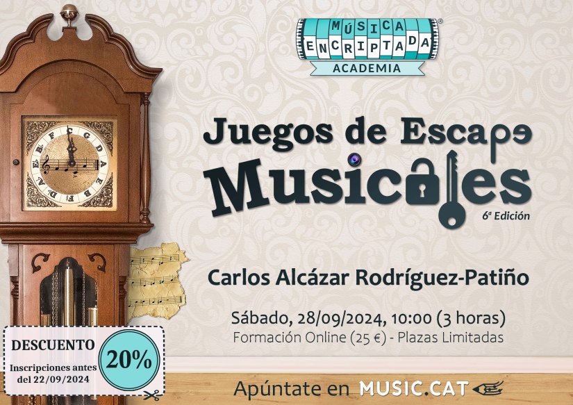 ¡Llegó el momento! El próximo 28 de septiembre de 2024 a las 10:00 (hora peninsular española) realizaré la primera sesión de formación de la Academia Música Encriptada del curso escolar 2024/2025.
