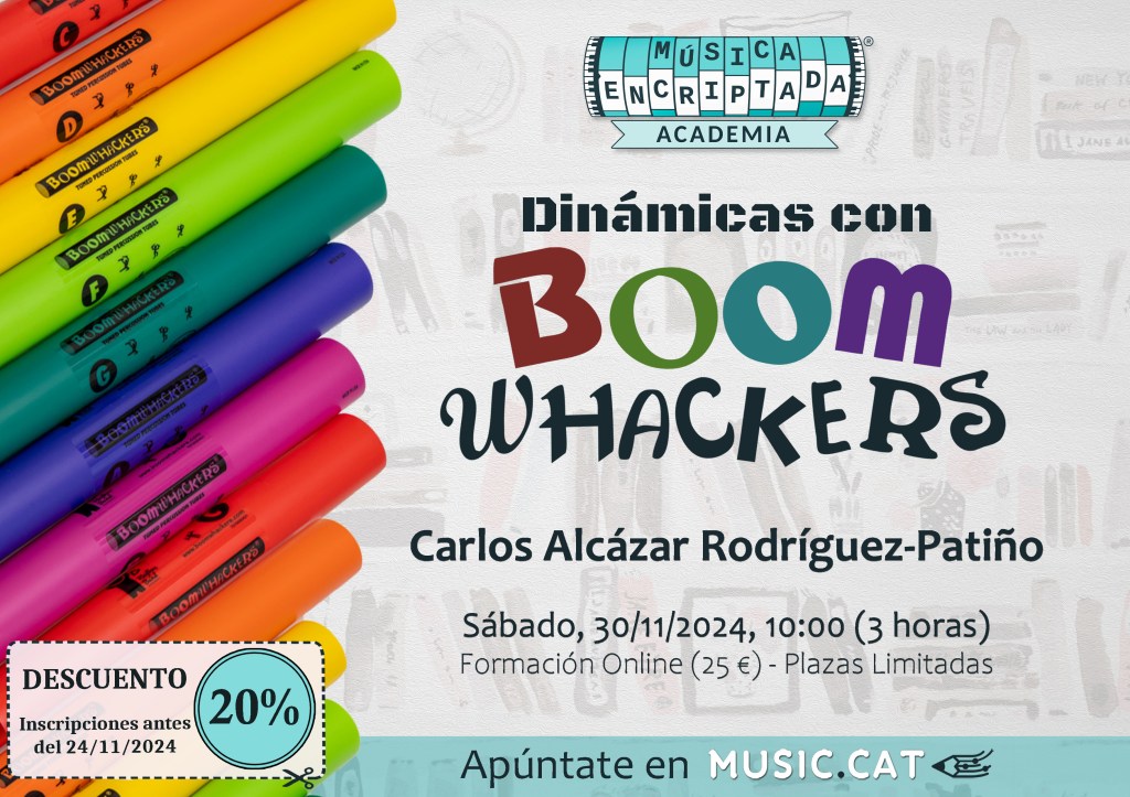 La temática será Dinámicas con BOOMWHACKERS. En este curso crearemos actividades con los boomwhackers, unos tubos con los que suenan las notas musicales cuando los golpeas y que permiten elaborar un montón de propuestas para el aula. Además, analizaremos otras actividades de desarrollo de la creatividad, para así encontrar actividades con múltiples usos que podrán ser utilizadas para trabajar el lenguaje y la práctica musical.