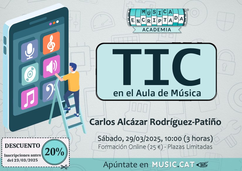 La temática será TIC en el Aula de Música. La sesión tendrá una duración de 3 horas y se realizará em DIRECTO por videoconferencia a través de Zoom, la cual quedará grabada y se podrá ver en DIFERIDO