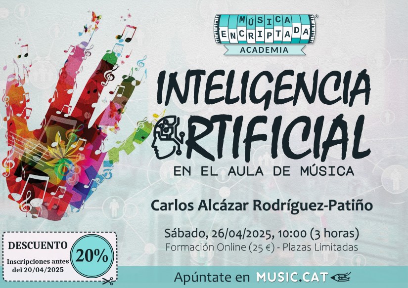 La temática será INTELIGENCIA ARTIFICIAL en el Aula de Música. La sesión tendrá una duración de 3 horas y se realizará em DIRECTO por videoconferencia a través de Zoom, la cual quedará grabada y se podrá ver en DIFERIDO