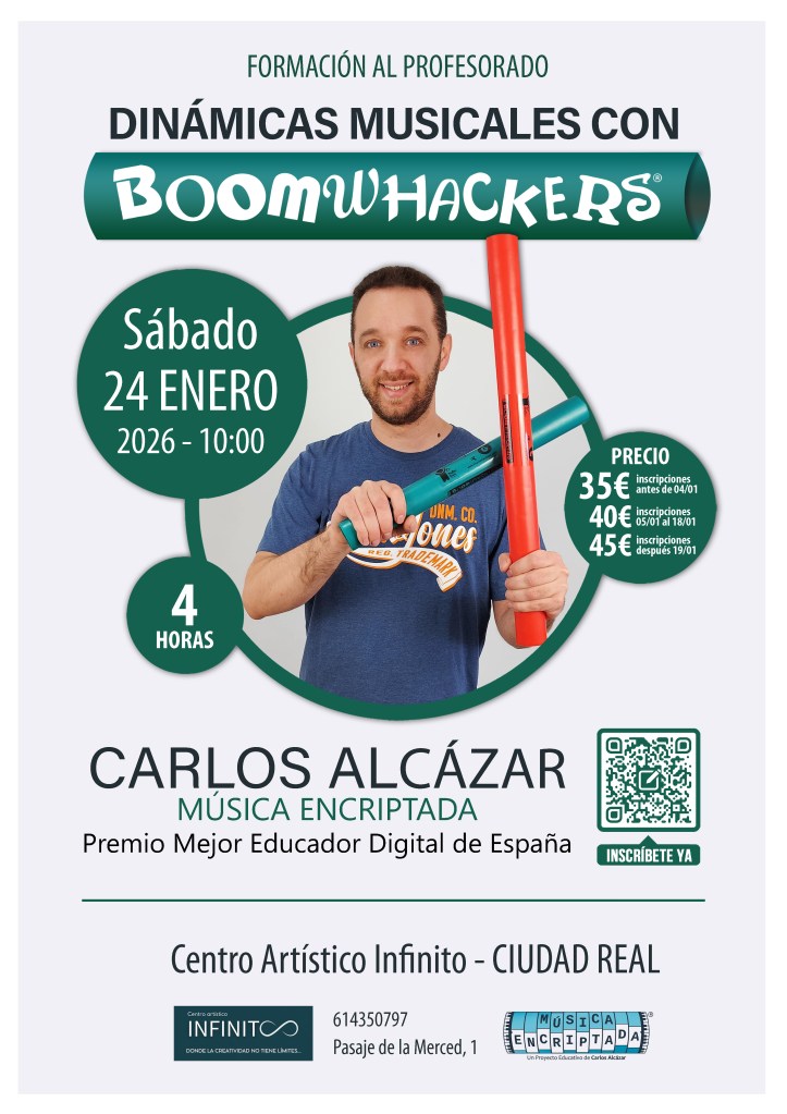 ¿Te gustaría descubrir todo el potencial de los Boomwhackers para crear dinámicas musicales activas llenas de energía en el aula? 🎶🥁 El próximo 24 de enero de 2026 impartiré una formación Centro Artístico Infinito de Ciudad Real. Una actividad que encantará al alumnado y fomentará el aprendizaje activo.