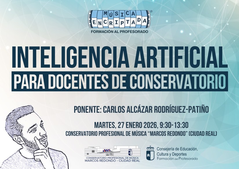 El próximo martes, 27 de enero de 2026 realizaré una formación muy especial sobre Inteligencia Artificial para los docentes del Conservatorio Profesional de Música «Marcos Redondo» de Ciudad Real. Y digo especial, ya que en este conservatorio me formé y donde tengo muchos amigos.