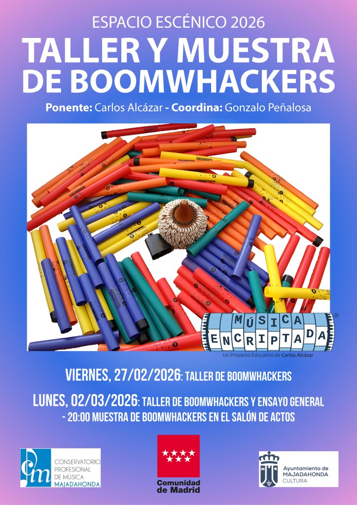 Los días 27 de febrero y 2 de marzo de 2026 estaré en el Conservatorio Profesional de Música de Majadahonda impartiendo un taller de Boomwhackers que incluirá una muestra con público.