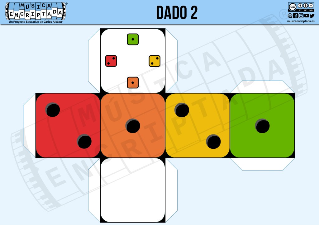 ¿Buscas una forma divertida de trabajar ritmo en clase? 🎲 Con este juego melódico con dados personalizados que se tocan tantos golpes como indican los números con su respectivo color. En la cara de arriba se muestra el contenido de la cara visible. Ideal para desarrollar el pulso y la atención de forma lúdica y activa.