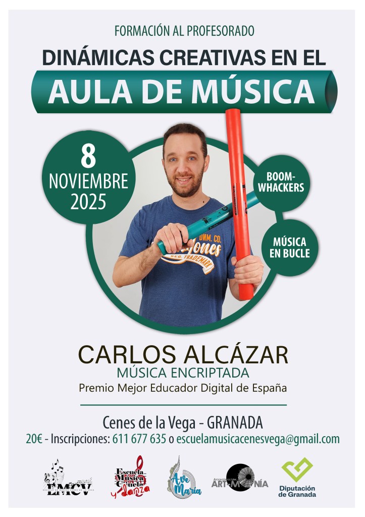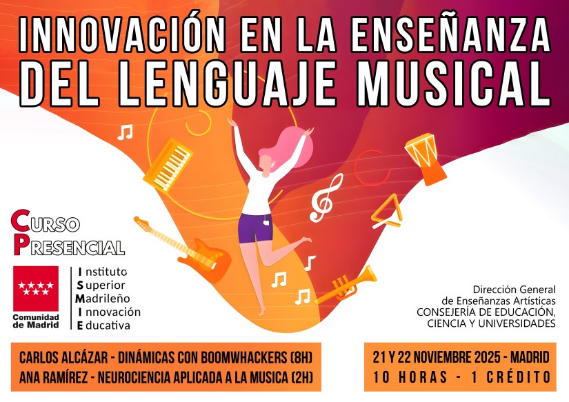 Los días 21 y 22 de noviembre de 2025 estaré en Madrid participando en las jornadas «Innovación en la Enseñanza del Lenguaje Musical» donde impartiré una formación sobre Boomwhackers de 8 horas. Serán 10 horas en horario de Viernes de 10:00 a 14:00 o 16:00 a 20:00 (a elegir) y el Sábado de 10:00 a 14:00 horas en el CIEM Federico Moreno Torroba.