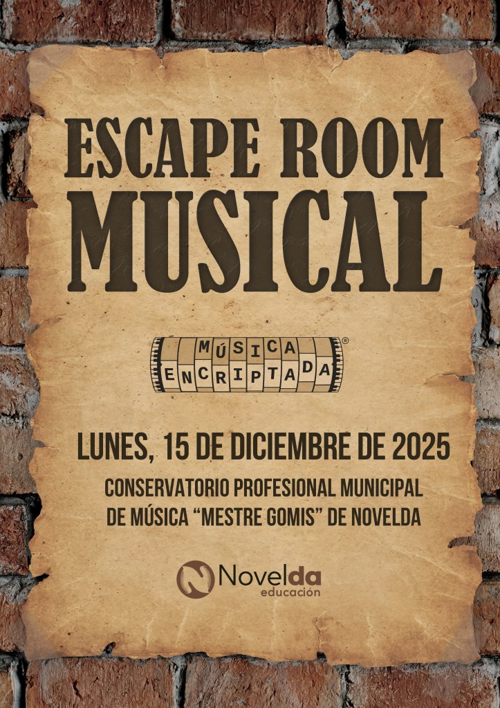 El próximo 15 de diciembre estaré en el Conservatorio Profesional Municipal de Música de Novelda (Alicante) realizando un Escape Room con el alumnado del centro.