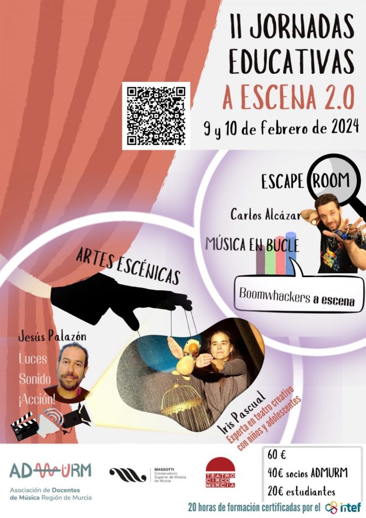 Atención, docentes de Murcia. Los días 9 y 10 de febrero de 2024 participaré en las II Jornadas Educativas «A escena 2.0», con el que además podrás conseguir un certificado del INTEF de 20 horas de formación.