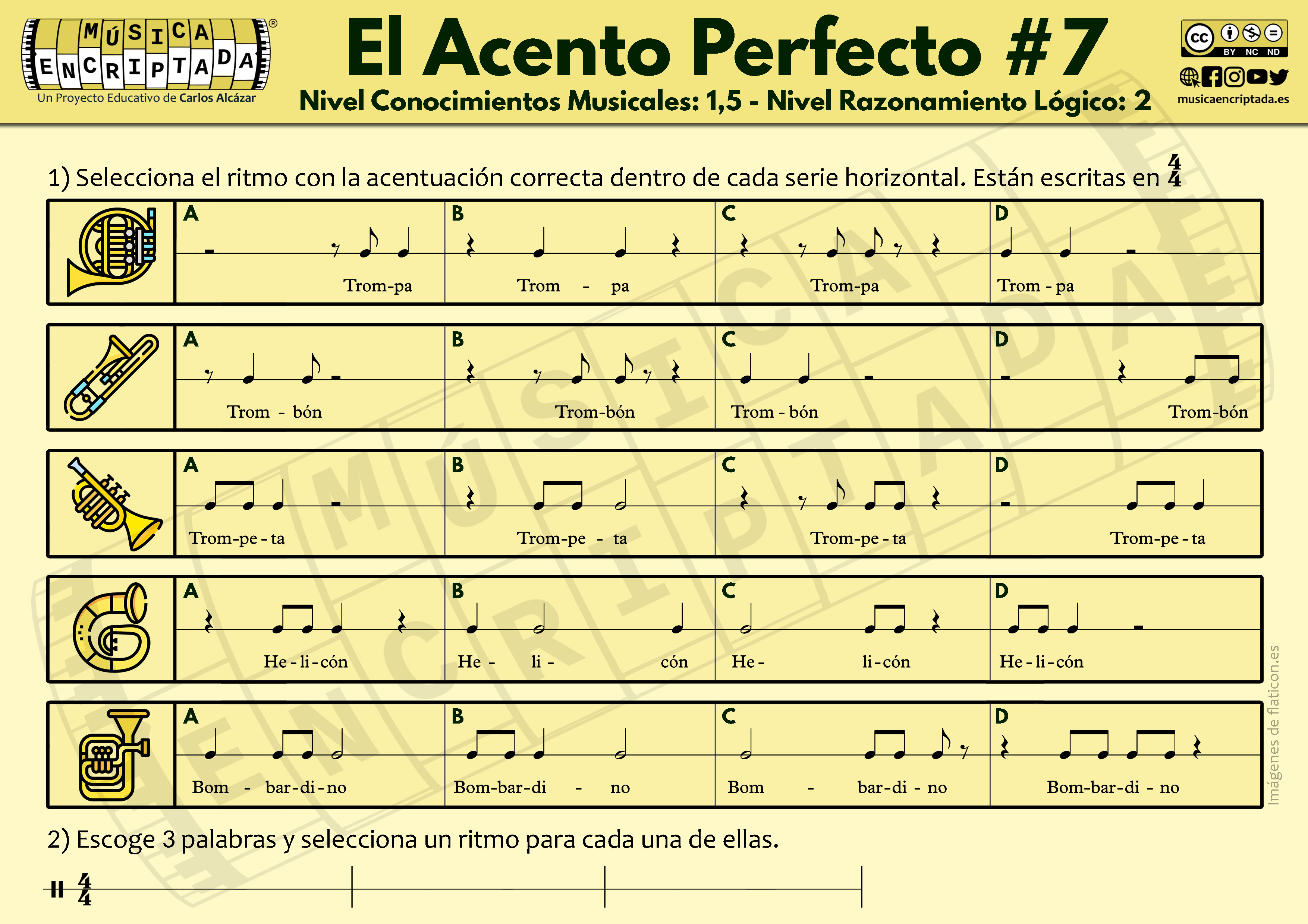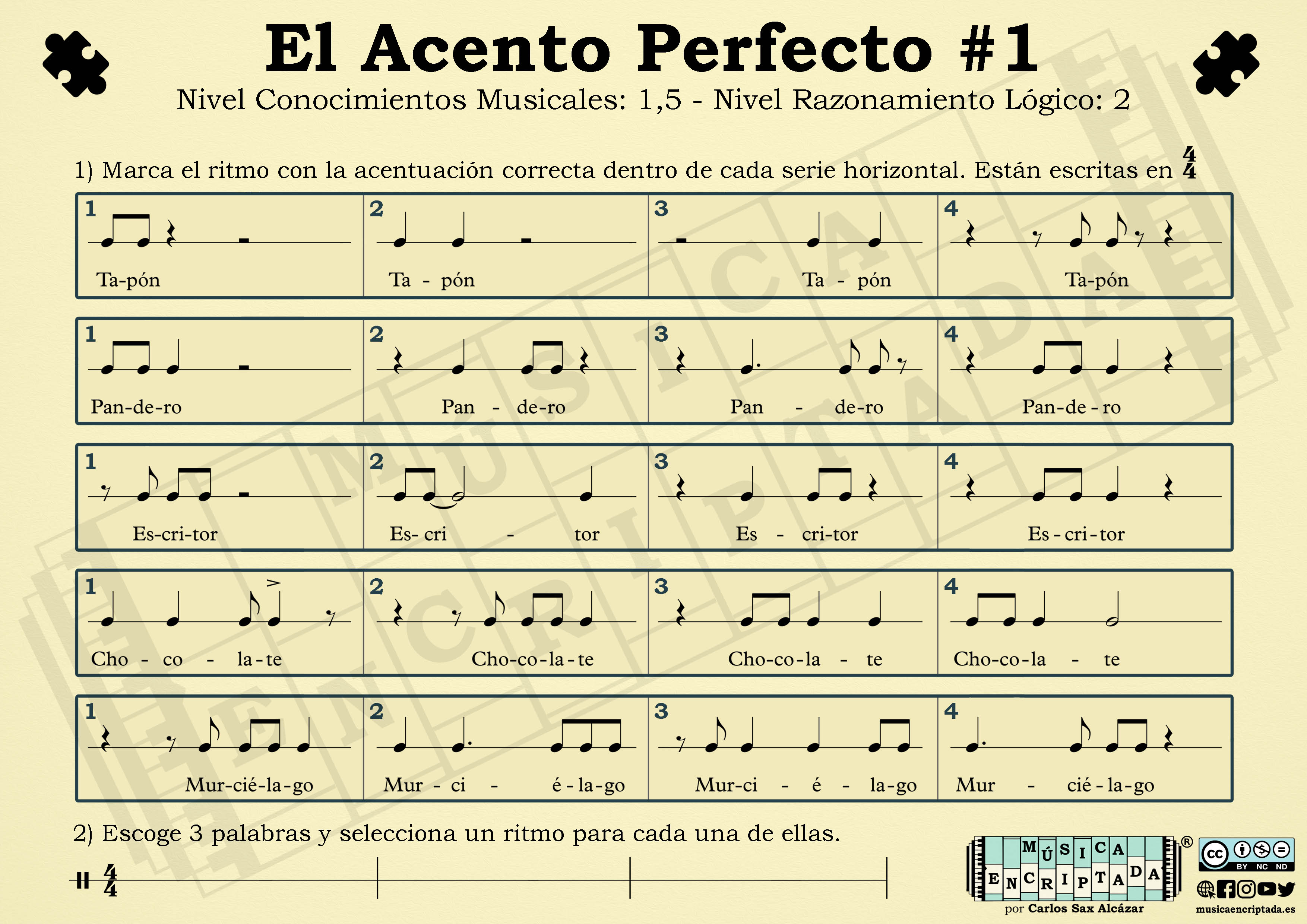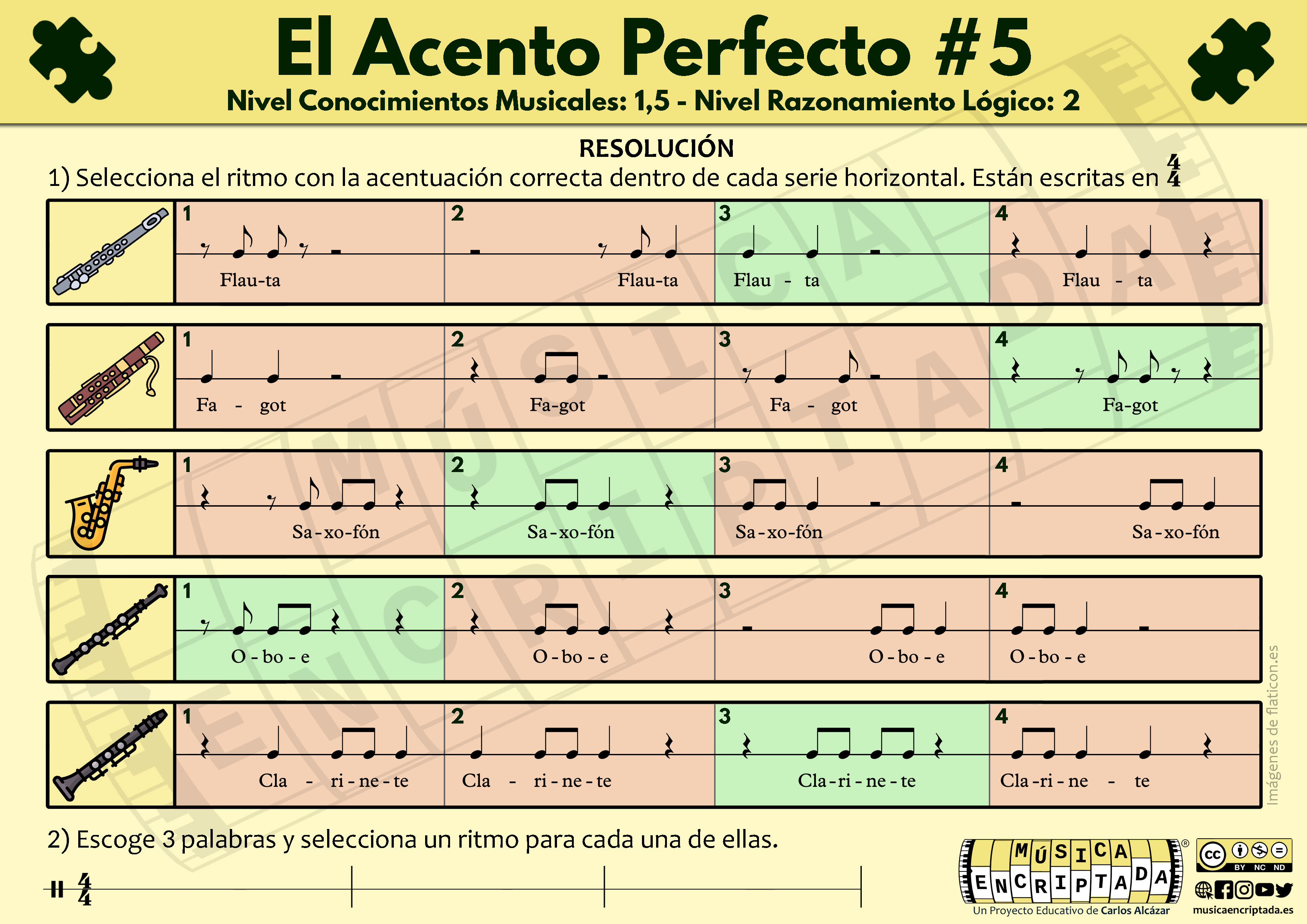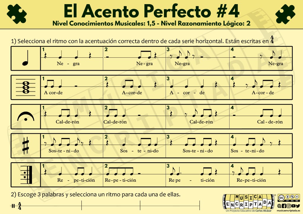 Aquí tenéis un nuevo enigma musical. Encuentra la acentuación correcta en la que la sonoridad de la palabra es la misma que la acentuación del compás, ¿serás capaz de resolverlo?