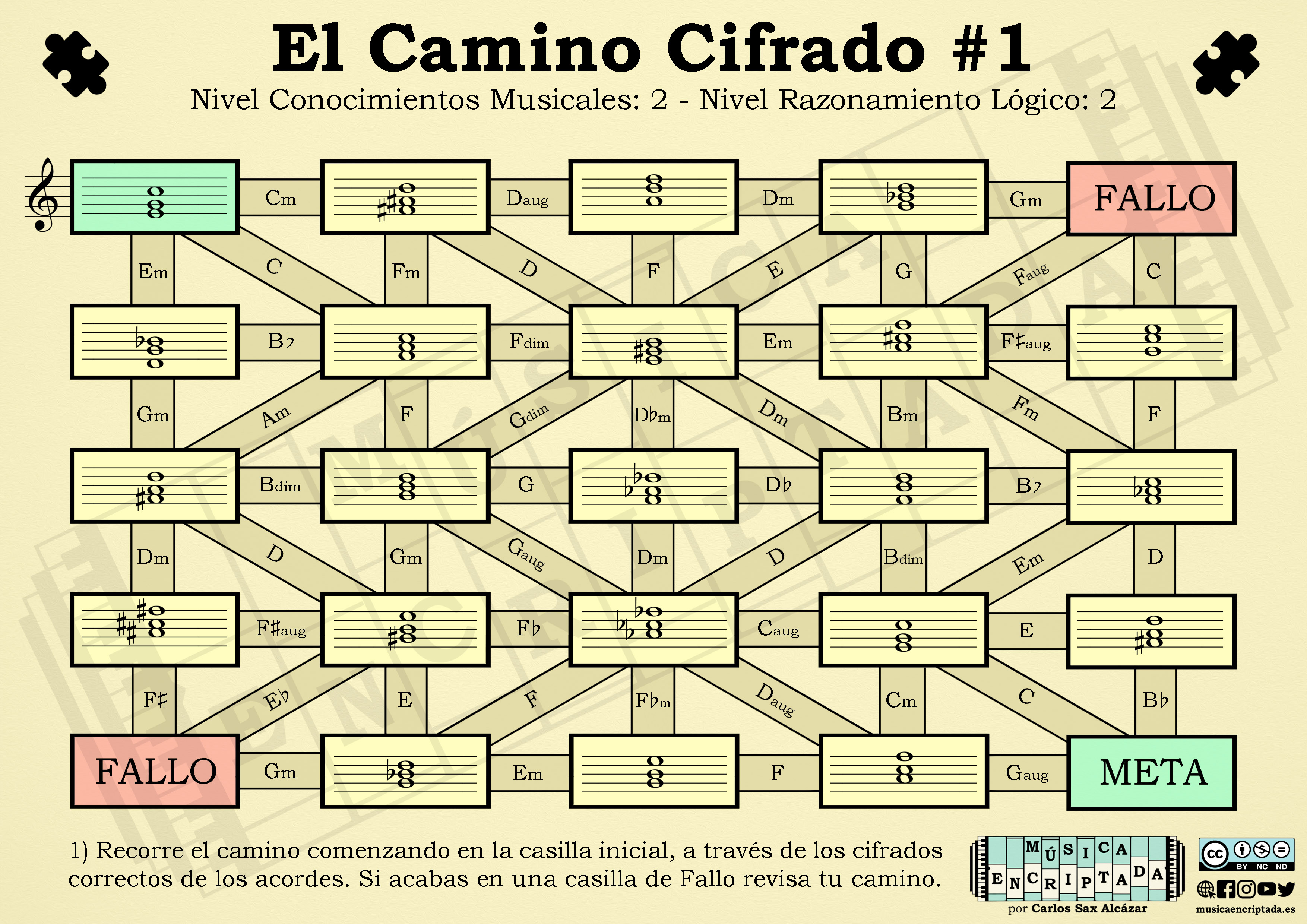 Camino Cifrado, Enigmas MusicalesCamino Cifrado 1 5 Oct 202017 Ago 2025 Música Encriptada Llega desde el inicio hasta el final a través de los cifrados correcto, ¿te atreves a jugar? Pulsa para ampliar la imagen solución Bajo licencia Creative Commons BY-NC-ND