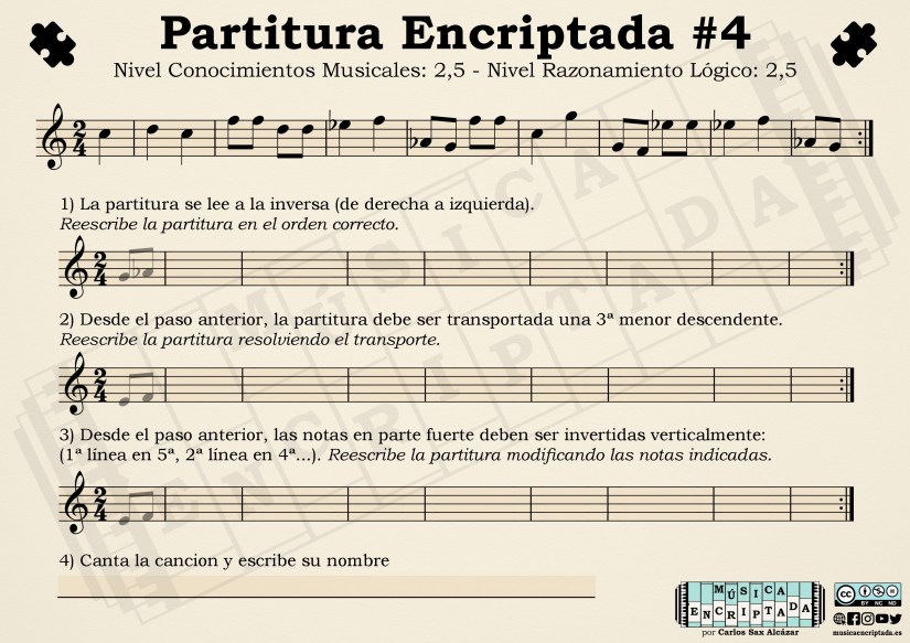 Aquí tenéis un nuevo enigma musical, un juego en el que reconstruir un partitura a través de la interpretación de una serie de instrucciones. Una forma divertida de verbalizar los conceptos de teoría y lenguaje musical para aprender de una manera diferente. ¿te atreves a jugar?