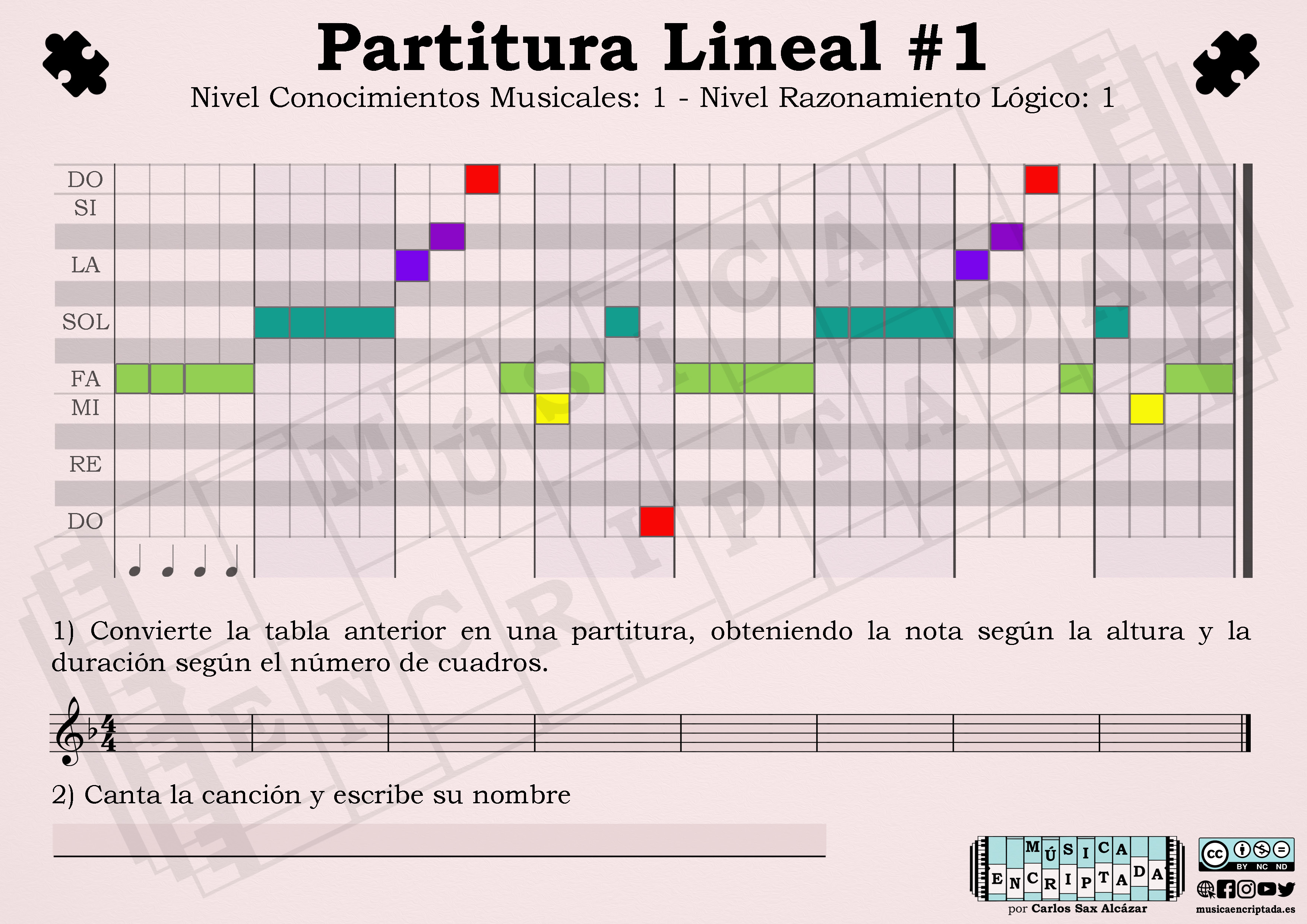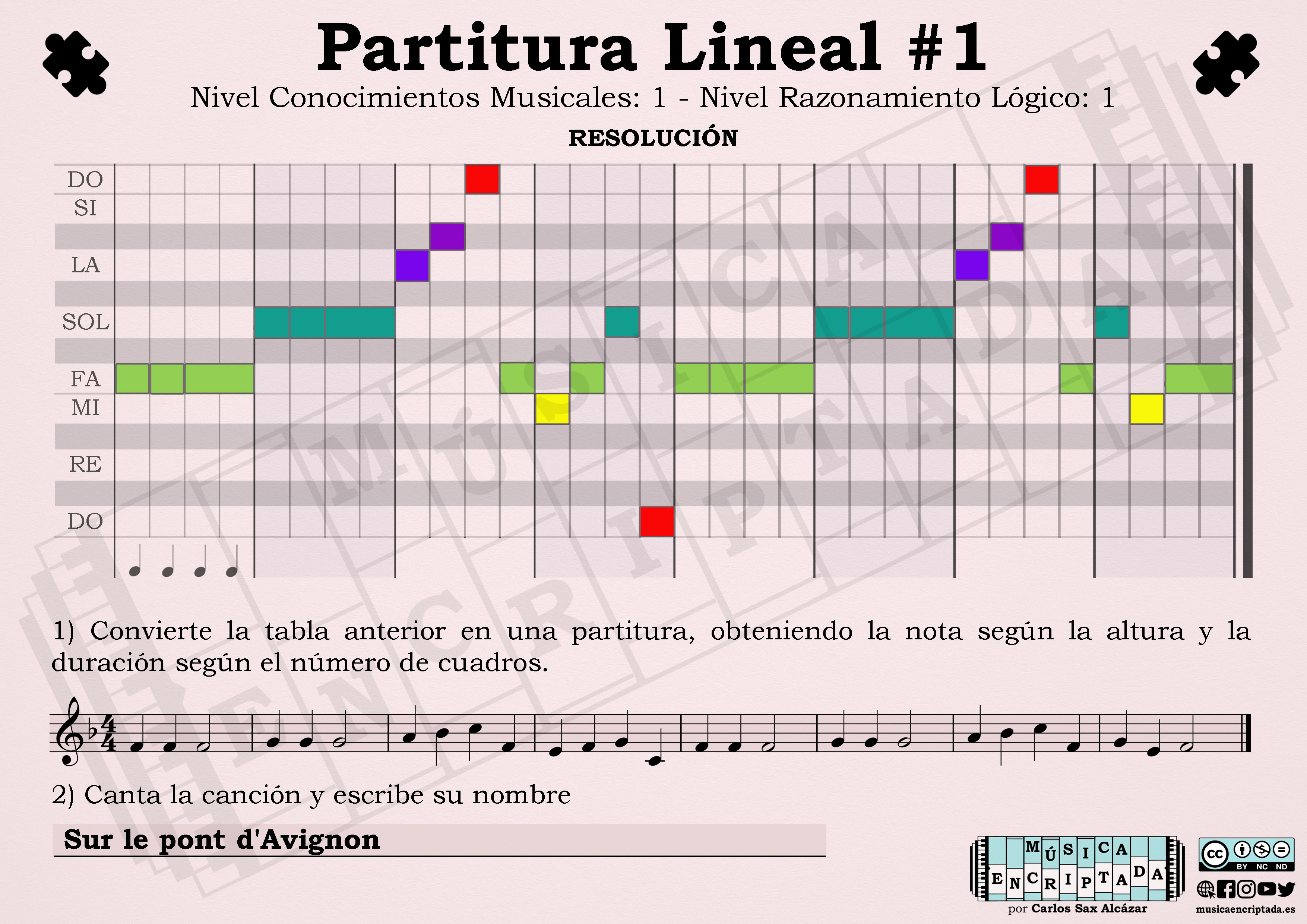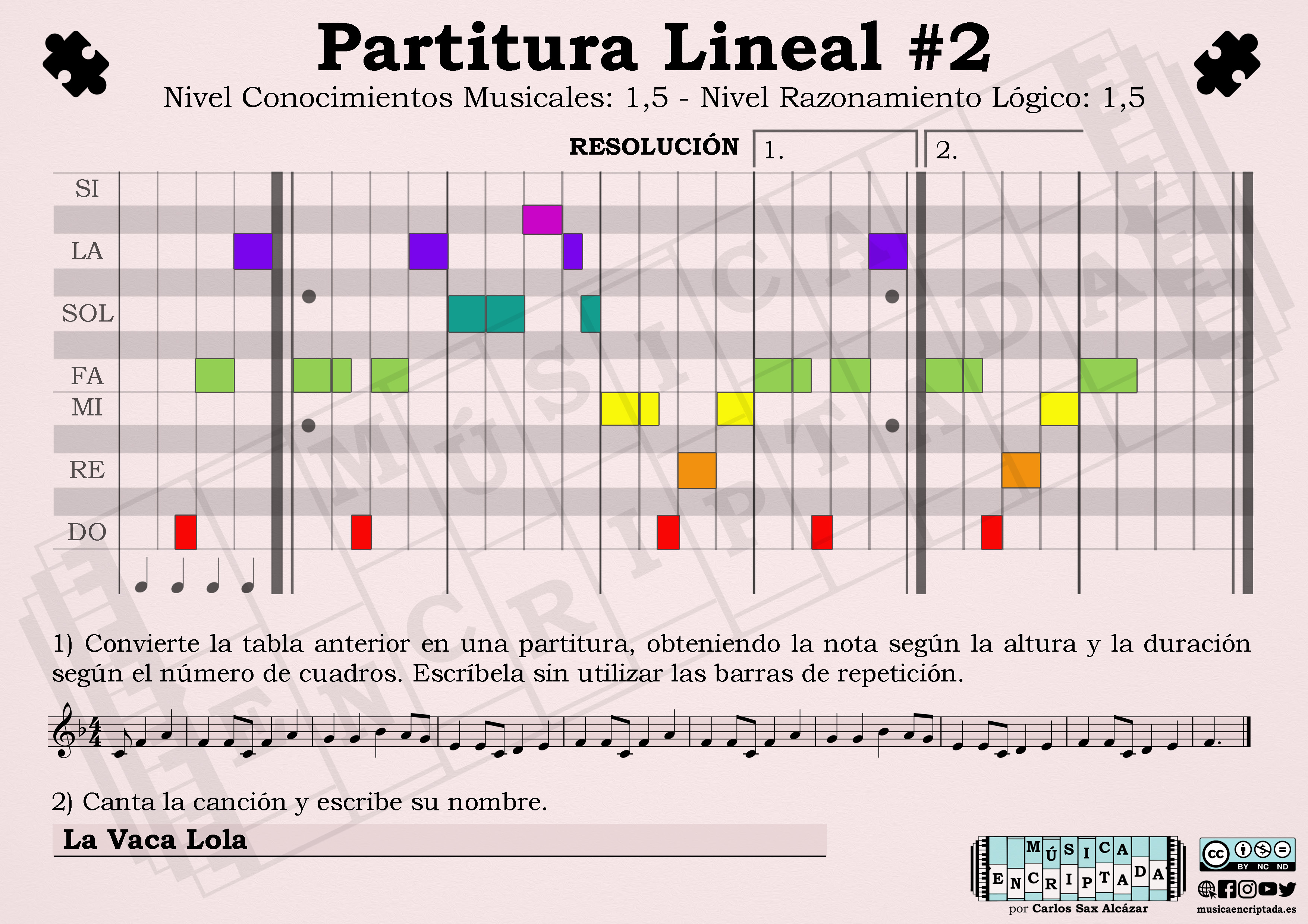 Aquí tenéis un nuevo enigma musical, un juego que podrás interpretar una melodía formada por piezas de colores. Ideal para tocar con Boomwhackers. Una forma divertida de trabajar previa al lenguaje musical con partituras fáciles para aprender de una manera diferente. ¿te atreves a jugar?
