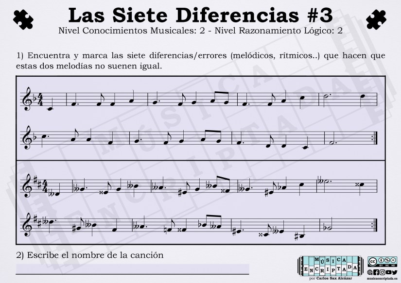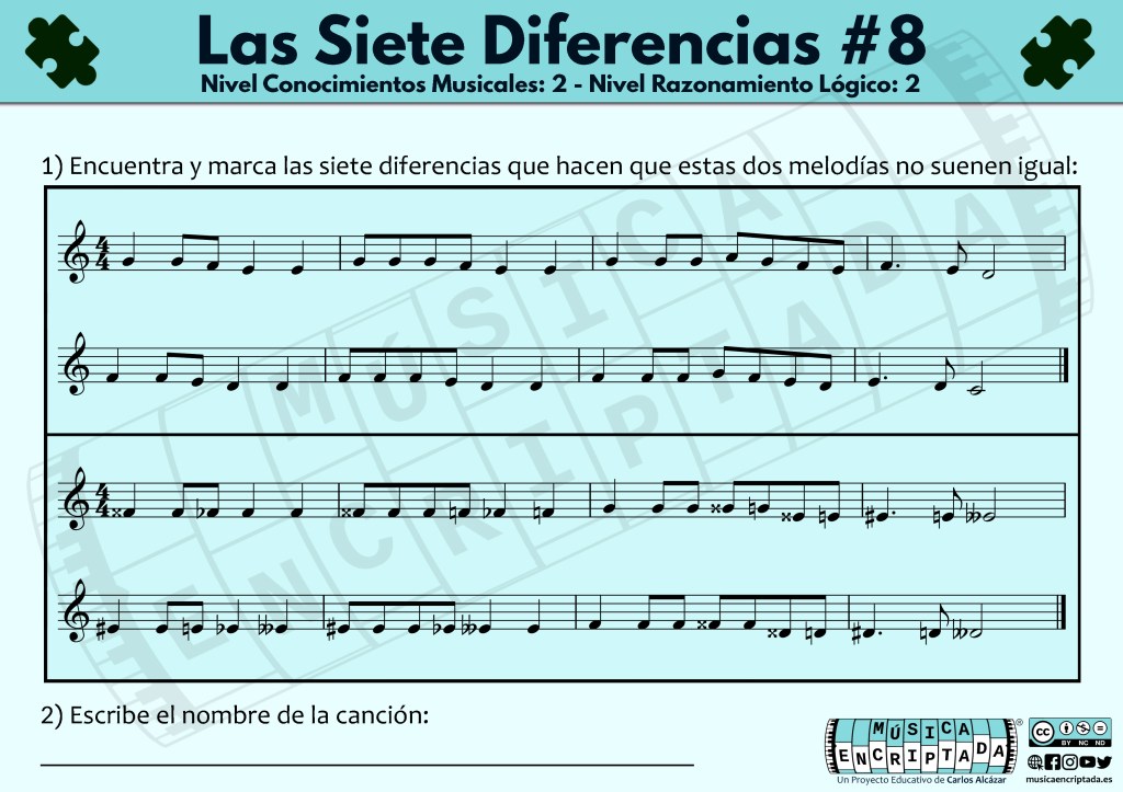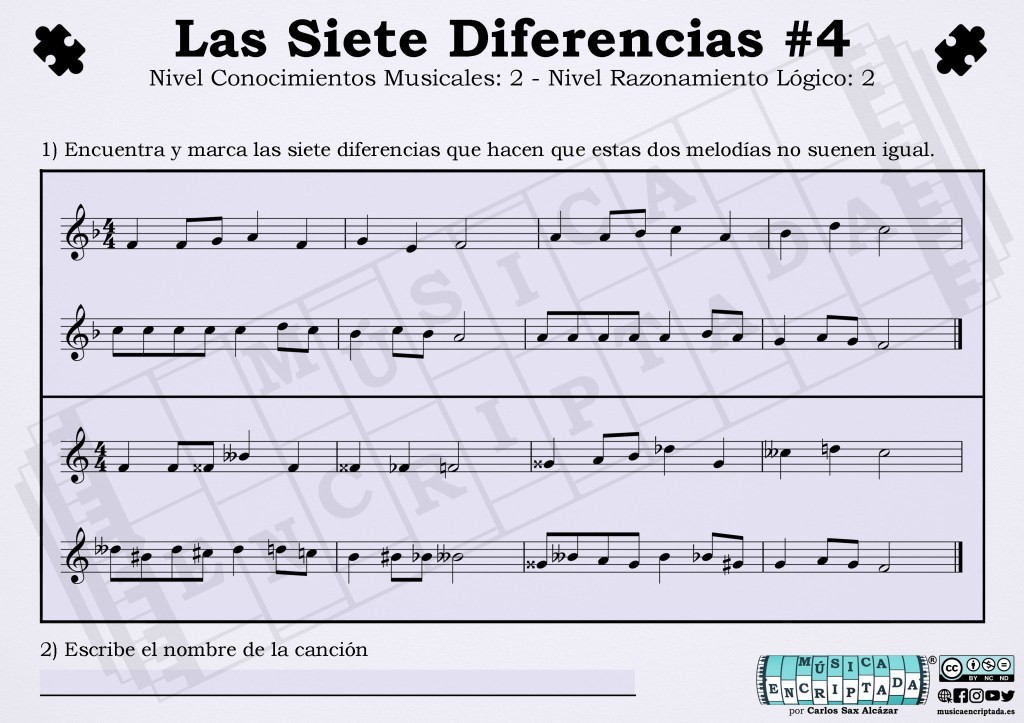 Aquí tenéis un nuevo enigma musical, un juego en el que tendréis que encontrar las diferencias, pero no solo visuales, sino aquellas que hacen que ambas melodías suenen distintas. Así trabajar la lectura musical para aprender de una forma divertida. ¿te atreves a jugar?