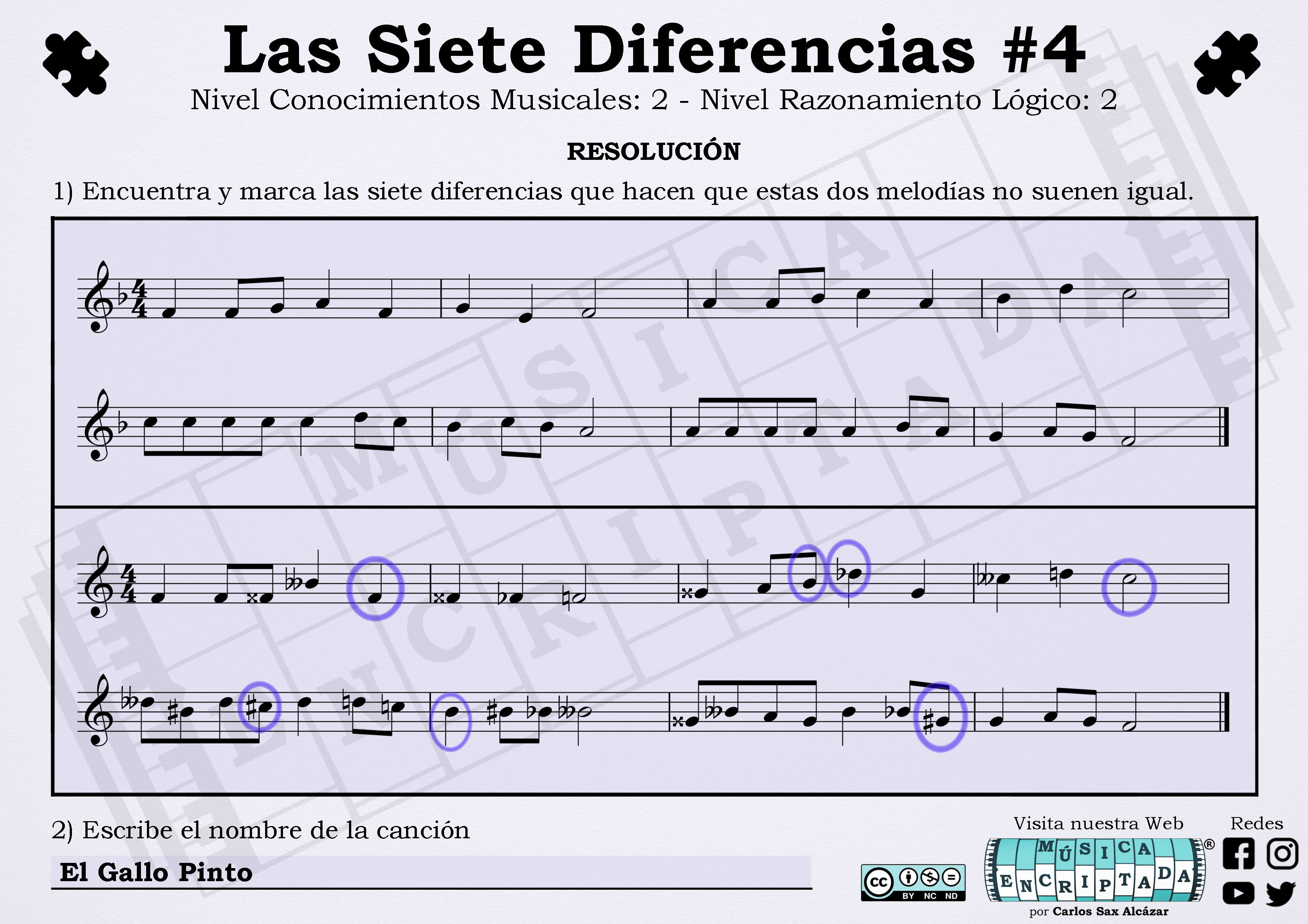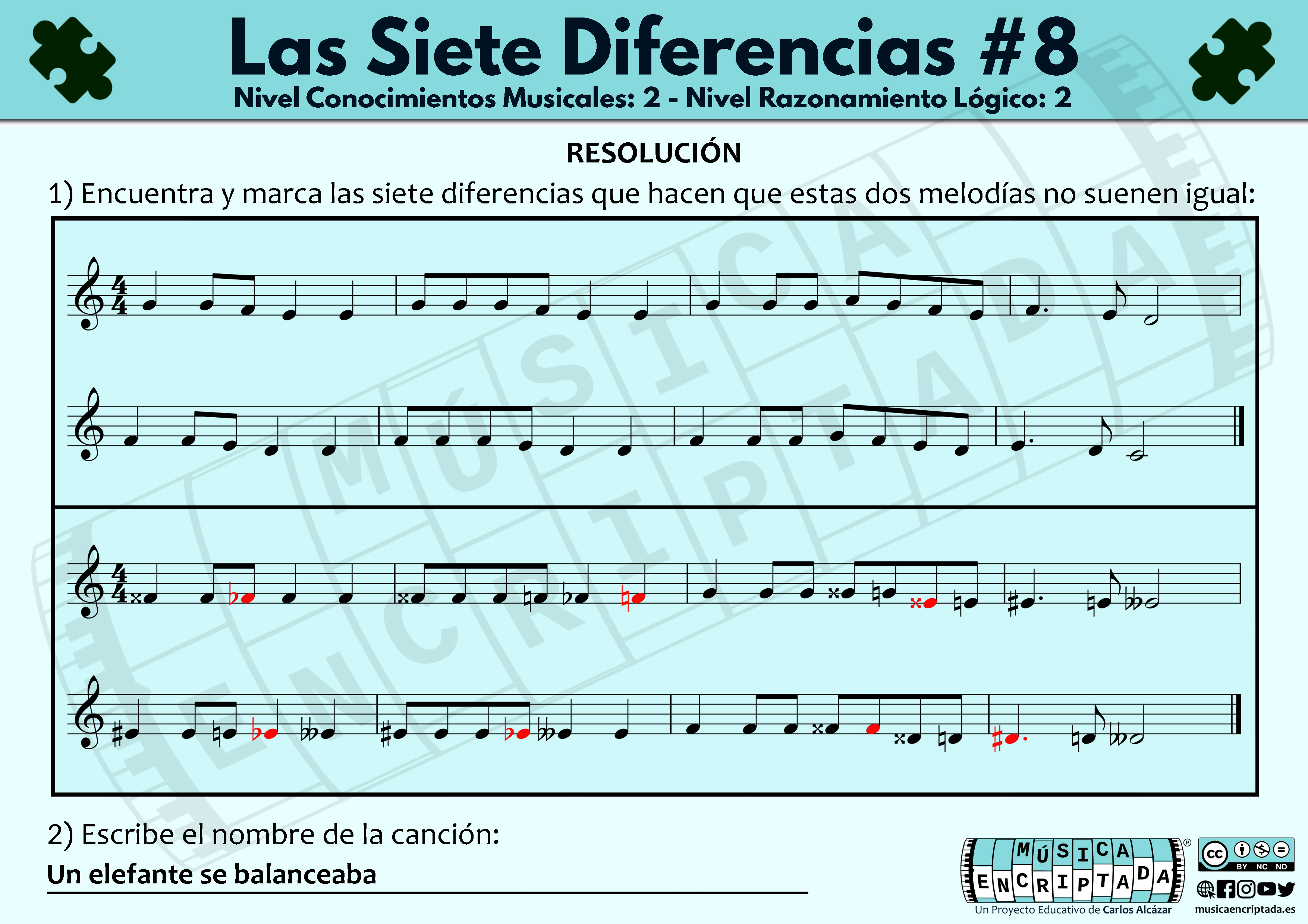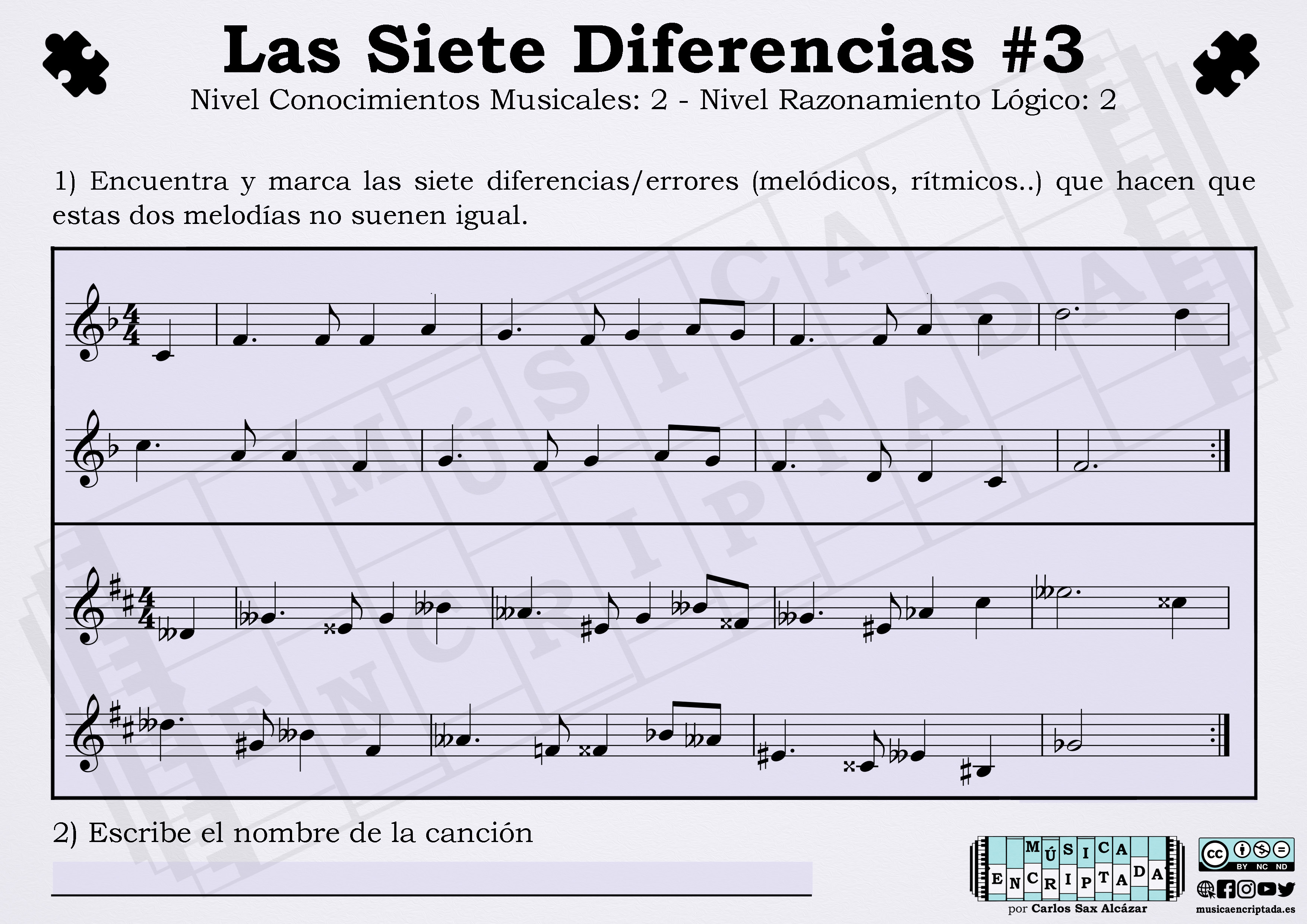 Aquí tenéis un nuevo enigma musical, un juego en el que tendréis que encontrar las diferencias, pero no solo visuales, sino aquellas que hacen que ambas melodías suenen distintas. Así trabajar la lectura musical para aprender de una forma divertida. ¿te atreves a jugar?