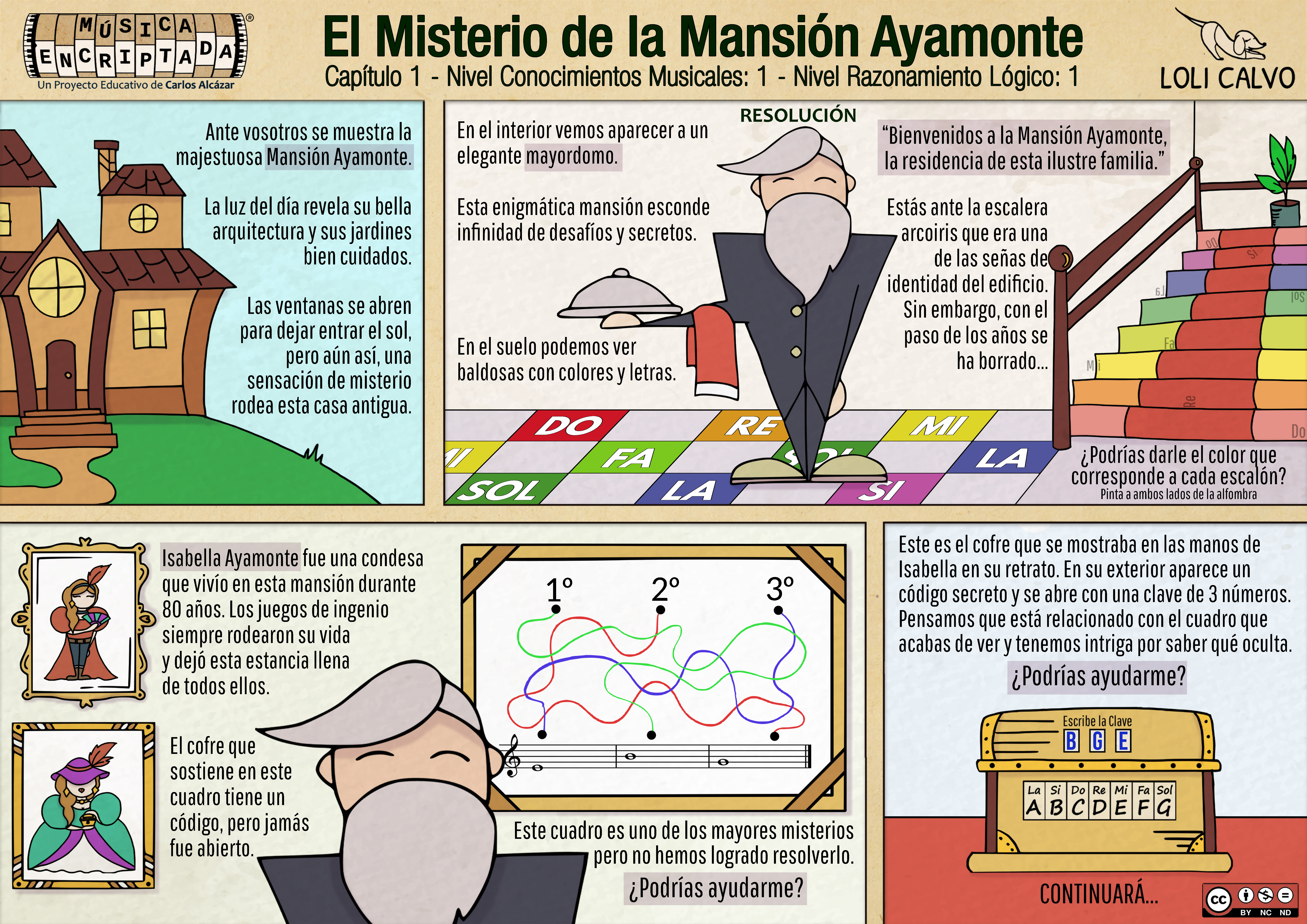 Historias Ilustradas, Juegos EscapeHistorias Ilustradas «El Misterio de la Mansión Ayamonte» cap. 1 25 Nov 202316 Abr 2024 Música Encriptada Disfruta de un nuevo concepto de Juegos de Escape para los más pequeños. Con ilustraciones de Loli Calvo SOLUCIÓN Bajo licencia Creative Commons BY-NC-ND