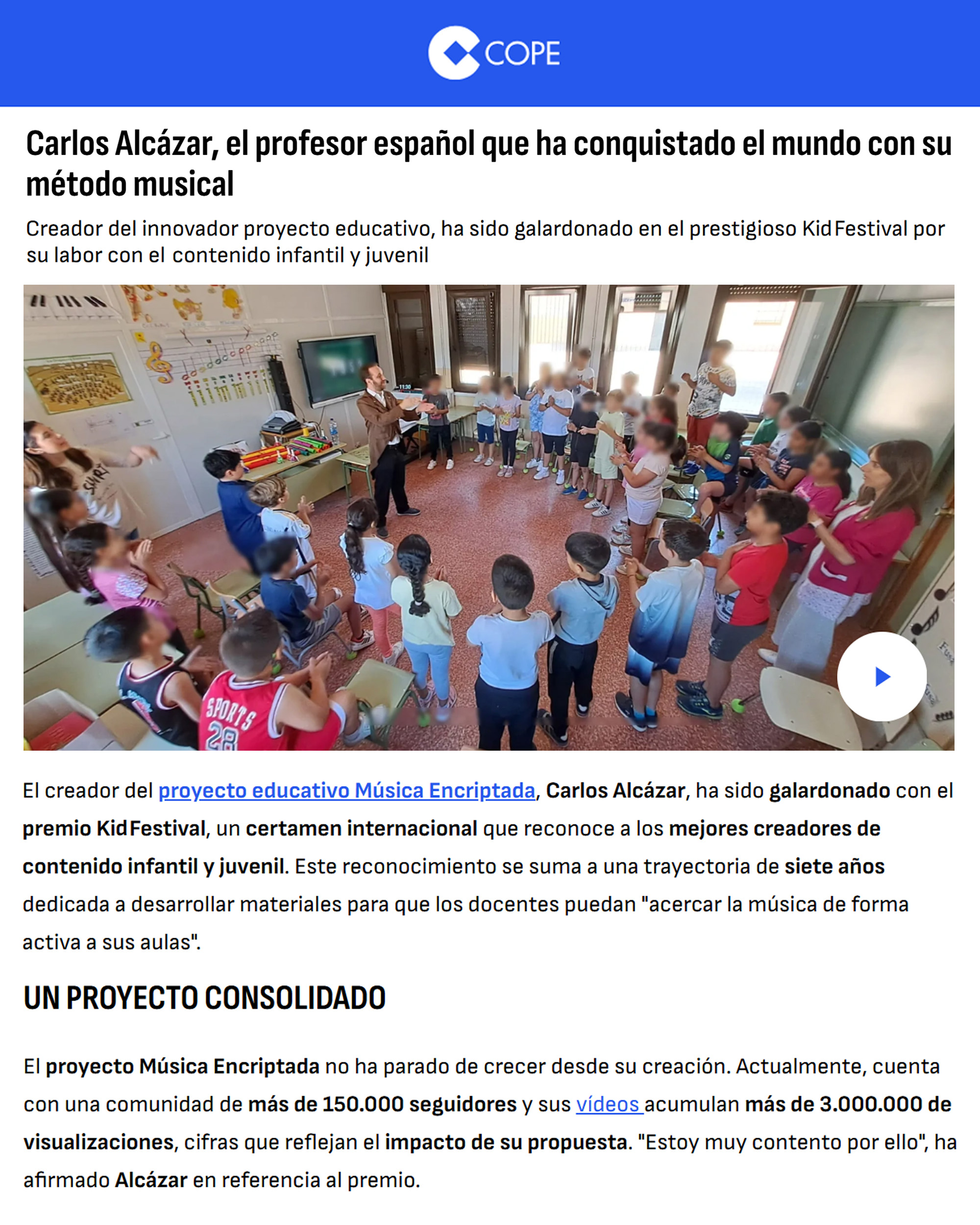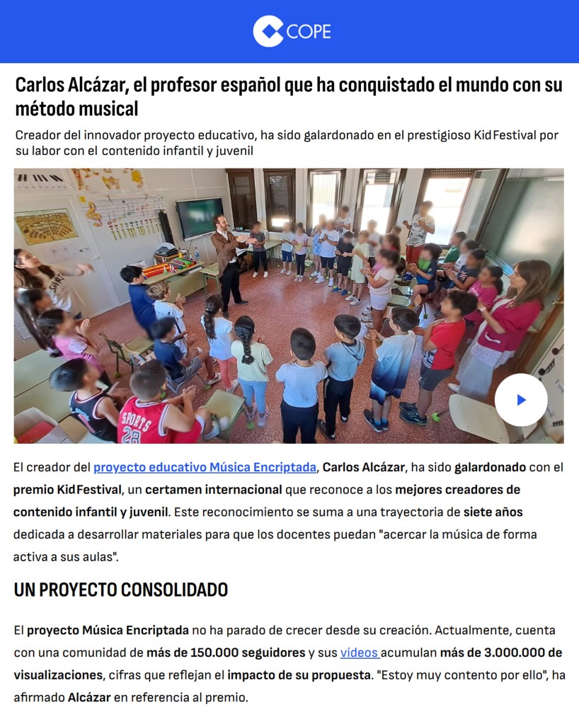 Este premio no es solo un reconocimiento al trabajo realizado, sino también a la idea de que la educación puede ser creativa, accesible y transformadora cuando se une la música con el aprendizaje. Me reafirma en que merece la pena seguir apostando por contenidos que conecten con niños, jóvenes y educadores desde la emoción y la curiosidad.