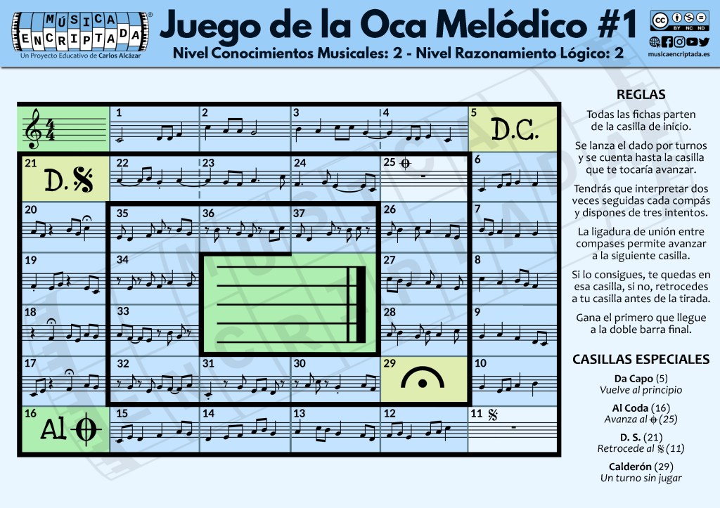 Descubre un juego con el que trabajar la lectura melódica además de conocer algunos signos de saltos utilizados en notación musical con un juego de la oca melódico. Ideal para trabajar en el aula de música y aprender lenguaje de una forma divertida. ¿Te atreves a jugar?