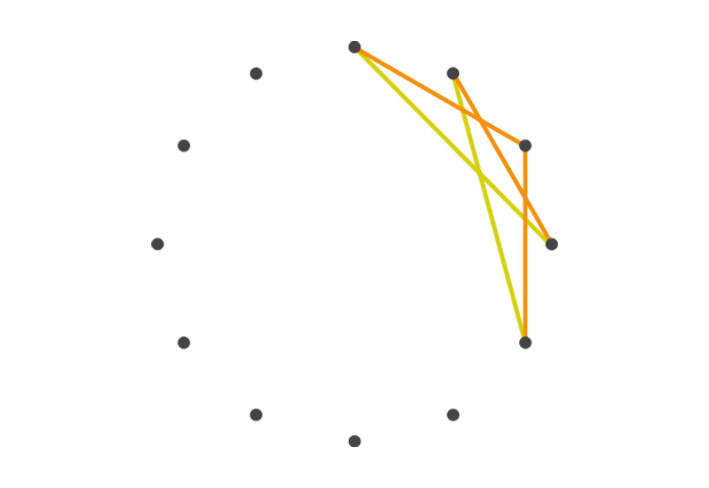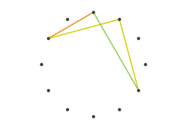 Aquí tenéis un nuevo recurso educativo que nos encanta y en el que podréis observar cómo se materializan las relaciones algebraicas / geométricas en relaciones musicales. Os dejamos un dibujo donde se ven todos los caminos regulares entre cada uno de sus vértices, así como todos los polígonos que genera cada uno de los caminos. Cada vértice es una nota, y cada línea es un intervalo. Además están todos los intervalos posibles. Ideal para trabajar escalas, acordes… y así aprender música y teoría musical.