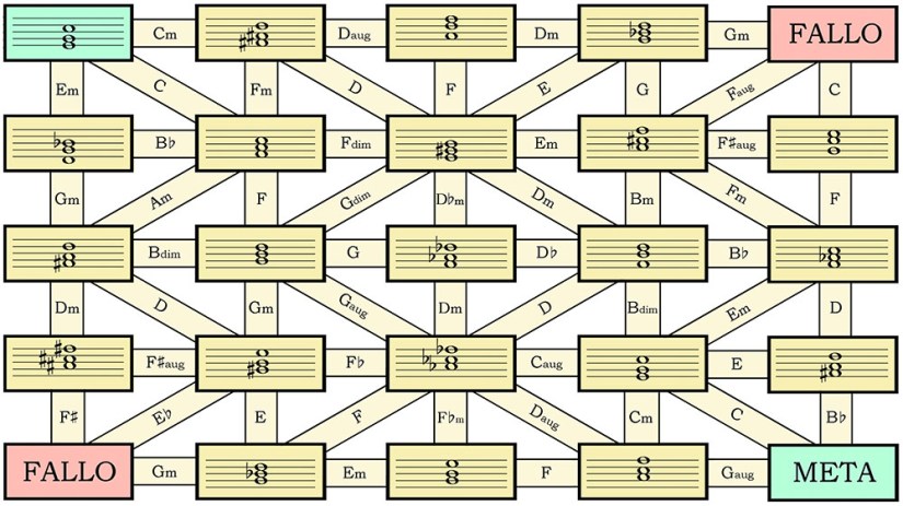 Obtén el camino correcto a través de los cifrados de acordes y así llegar a la meta.