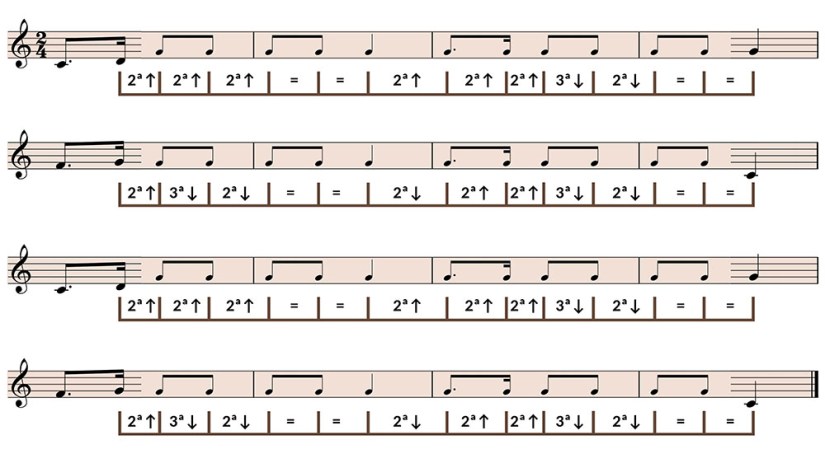 Reconstruye una melodía resolviendo una serie de intervalos ascendentes y descendentes.