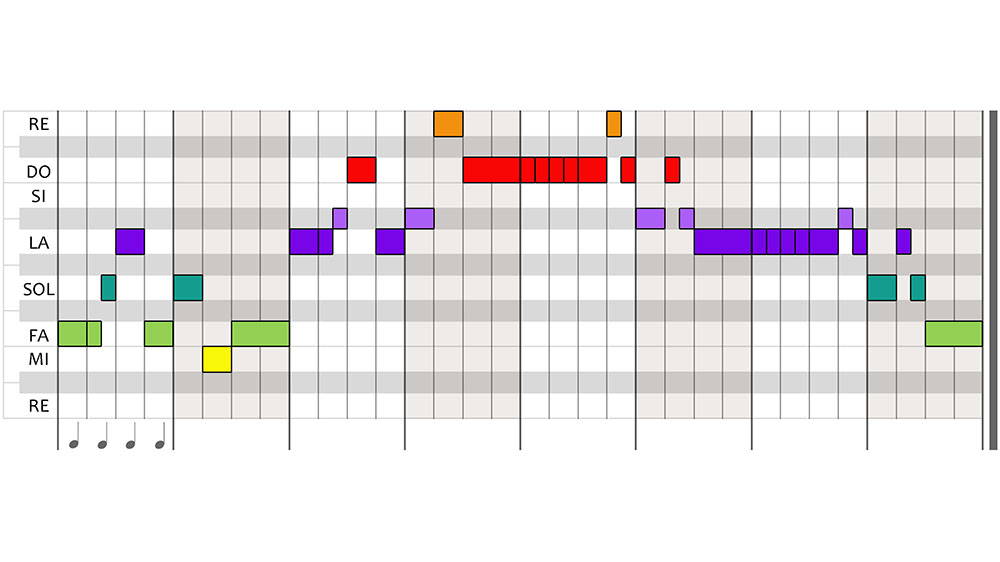 Reconstruye una melodía con una partitura en forma de figuras de diferentes tamaños y colores.