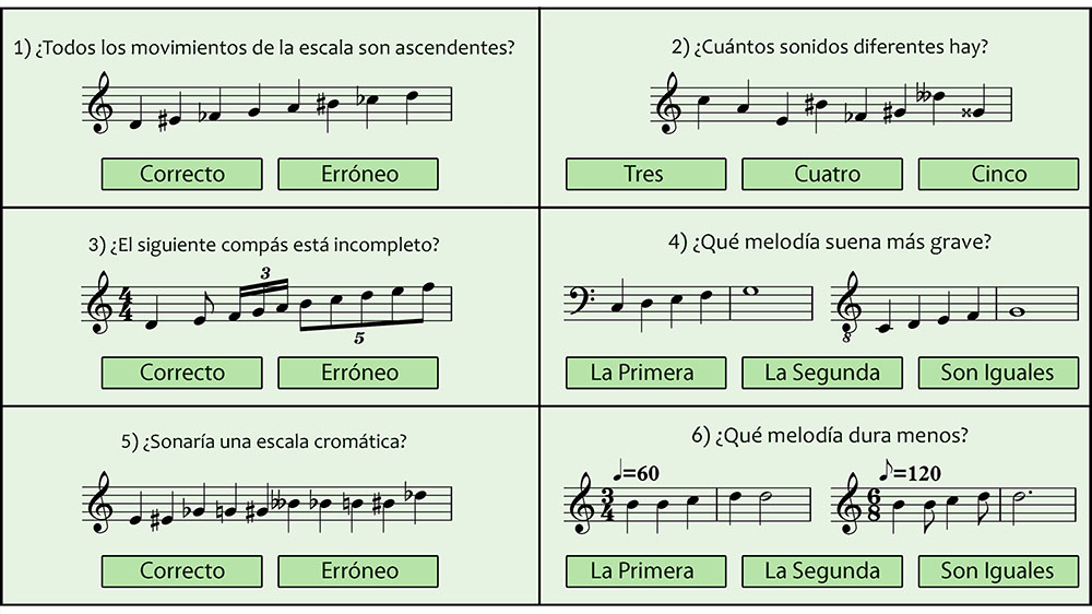 Descubre retos de ingenio que pondrán a prueba las habilidades del alumno a la hora de realizar el ejercicio. Cada uno de ellos plantea un juego en el que hay que hacer uso de los conocimientos musicales para su resolución.