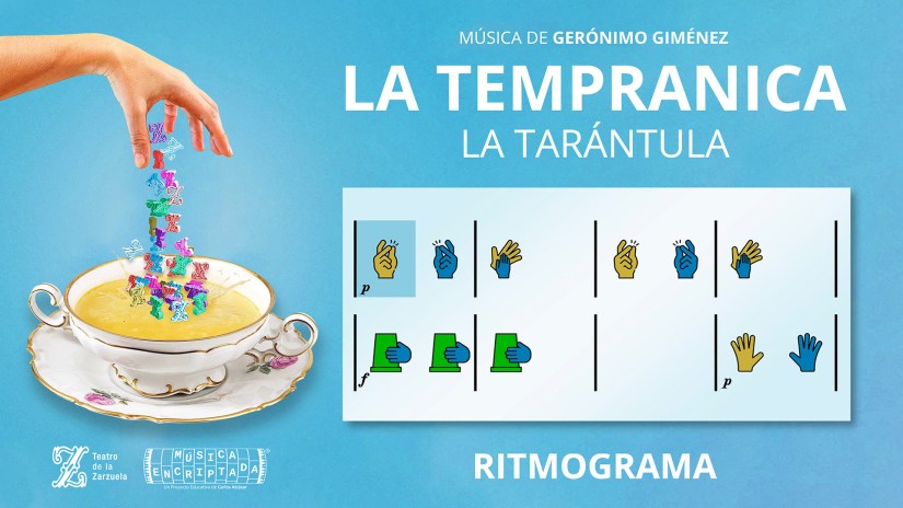Un juego rítmico para hacer con un vaso con la música de La Tarántula de La Tempranica a través de un ritmograma animado.